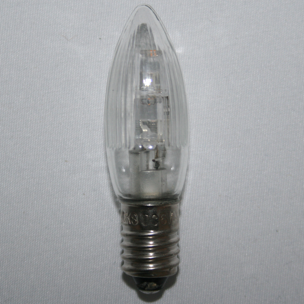 9x Spitzkerze Glühbirne Ersatzbirne Topkerze für Lichterkette / Schwibbögen / Lichterbogen - LED 6V / 0,2W E10 halb geriffelt Outdoor
