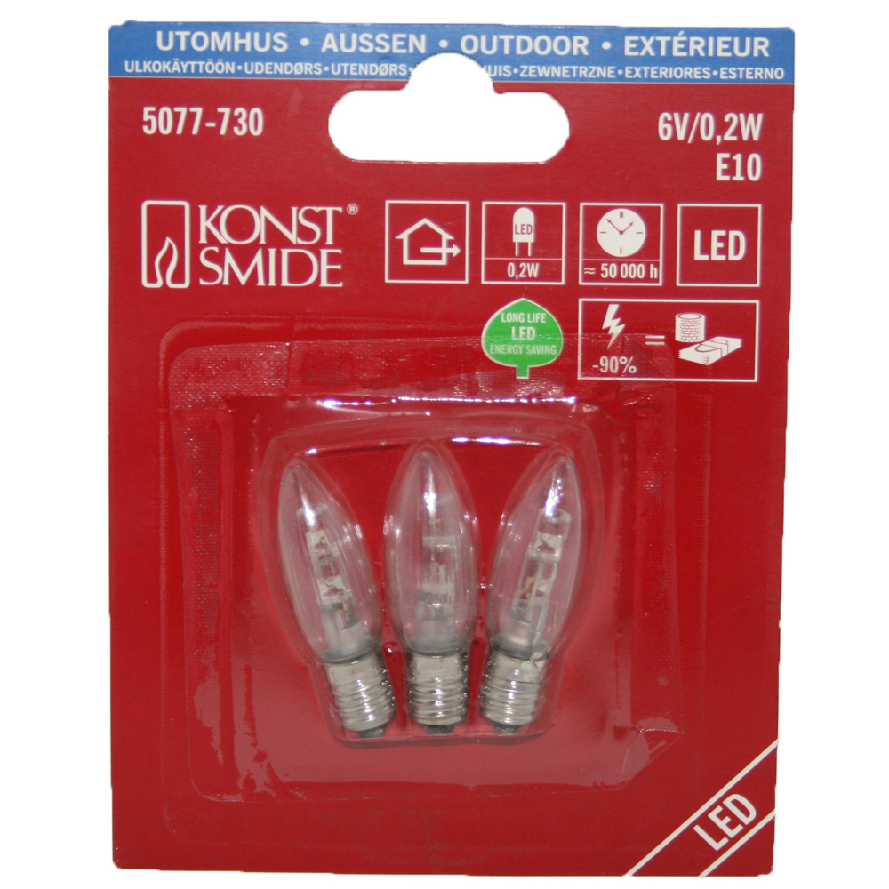 Produktinformationen "9x Spitzkerze Glühbirne Ersatzbirne Topkerze für Lichterkette / Schwibbögen / Lichterbogen - LED 6V / 0,2W E10 halb geriffelt Outdoor"