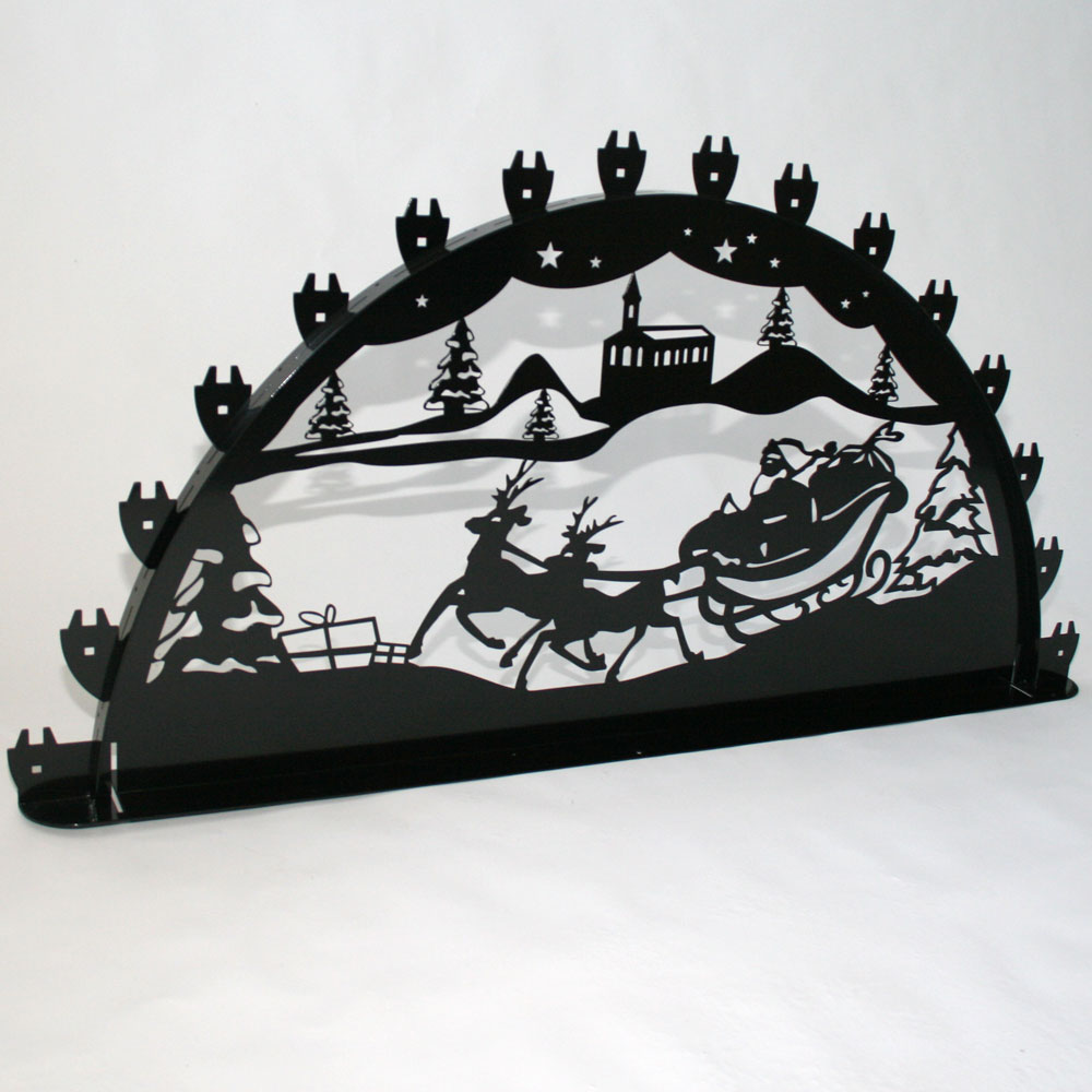 Produktinformationen "Außenschwibbogen Schwibbogen Lichterbogen Metall - Motiv: Weihnachtsmann 1,2 m tiefschwarz (RAL 9005) glänzend"