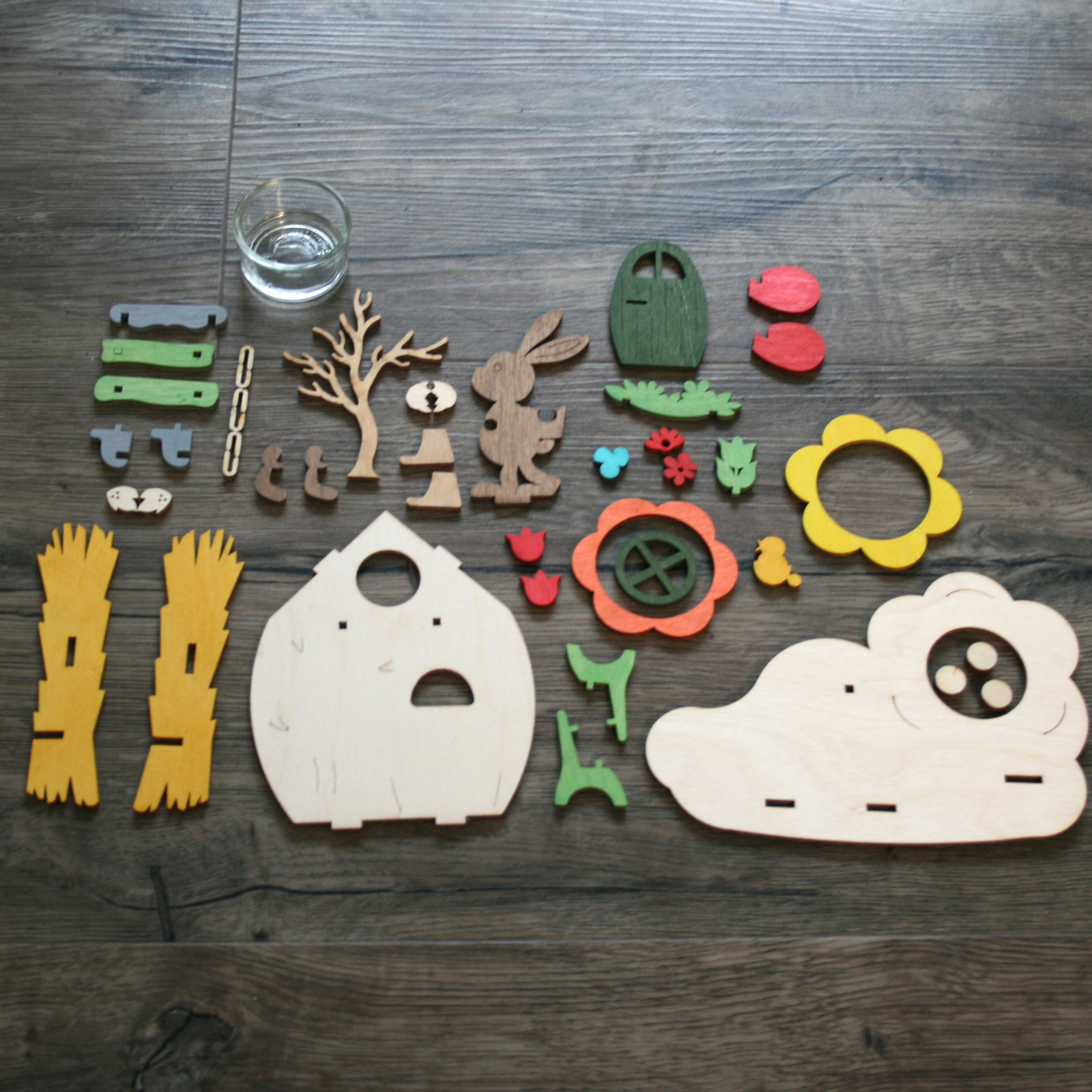 Produktinformationen "Bastelset aus Holz für Kinder "Teelichthalter Osterhaus" Ostern"