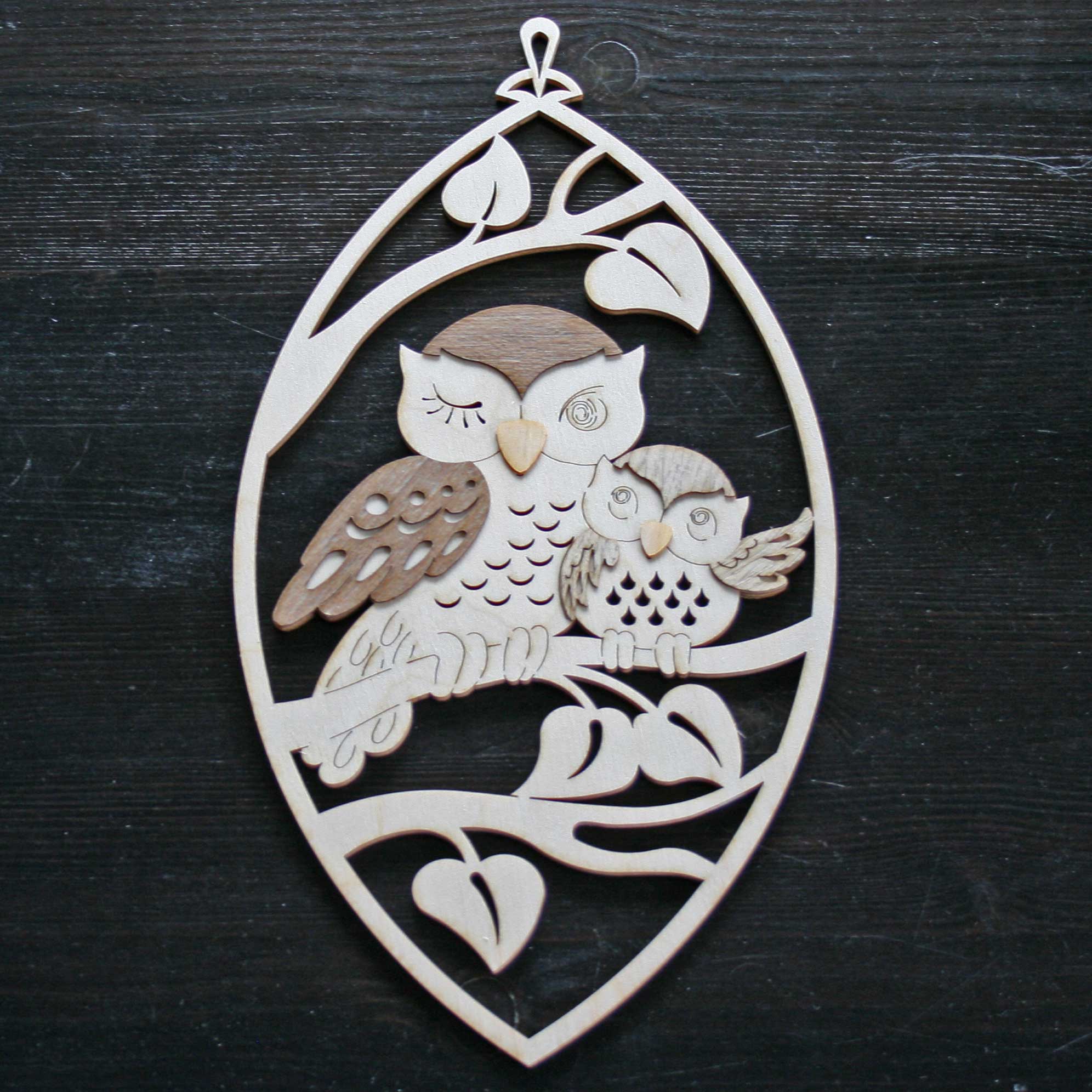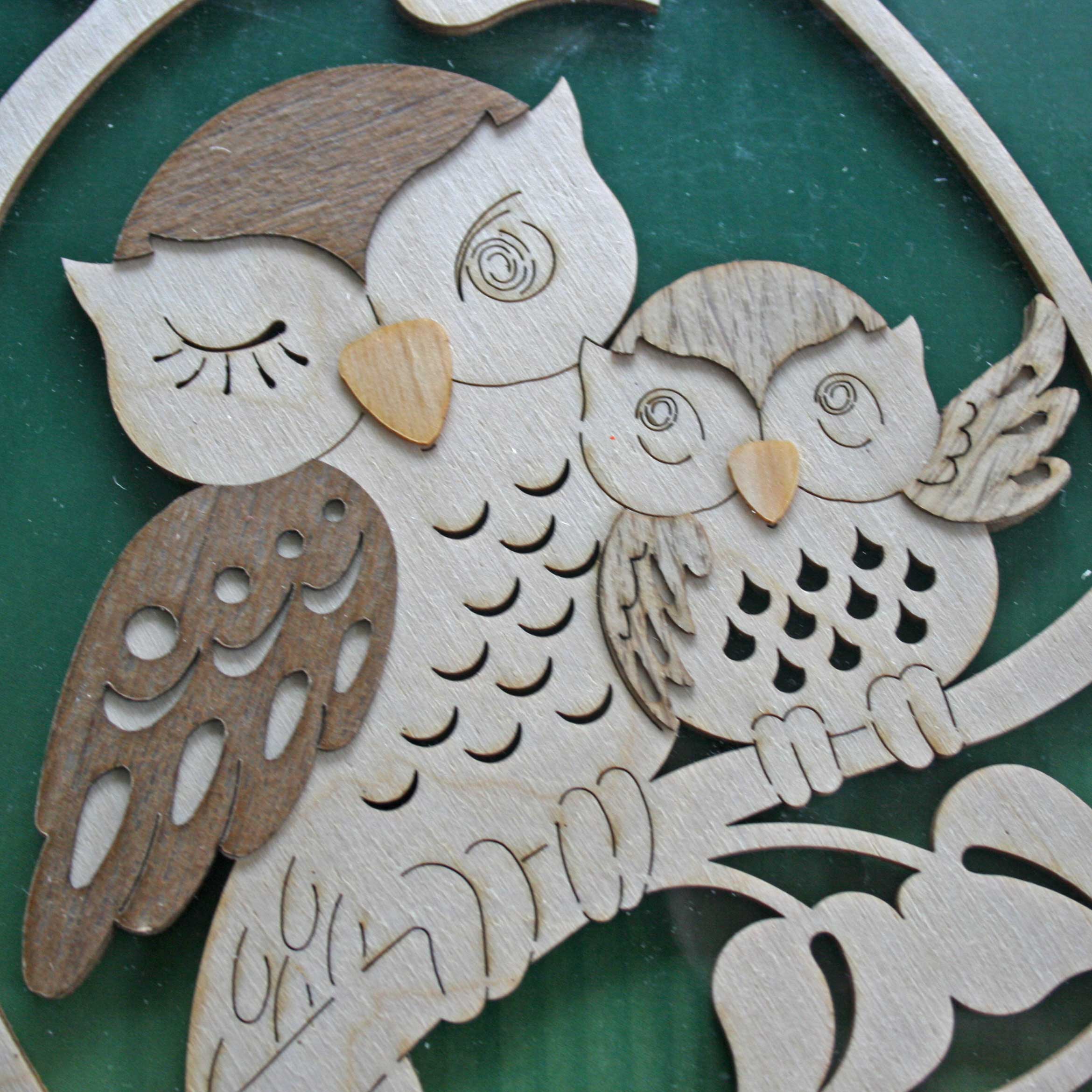 Produktinformationen "Fensterbild aus Holz "Eule im Oval" (verschiedene Motiv)"