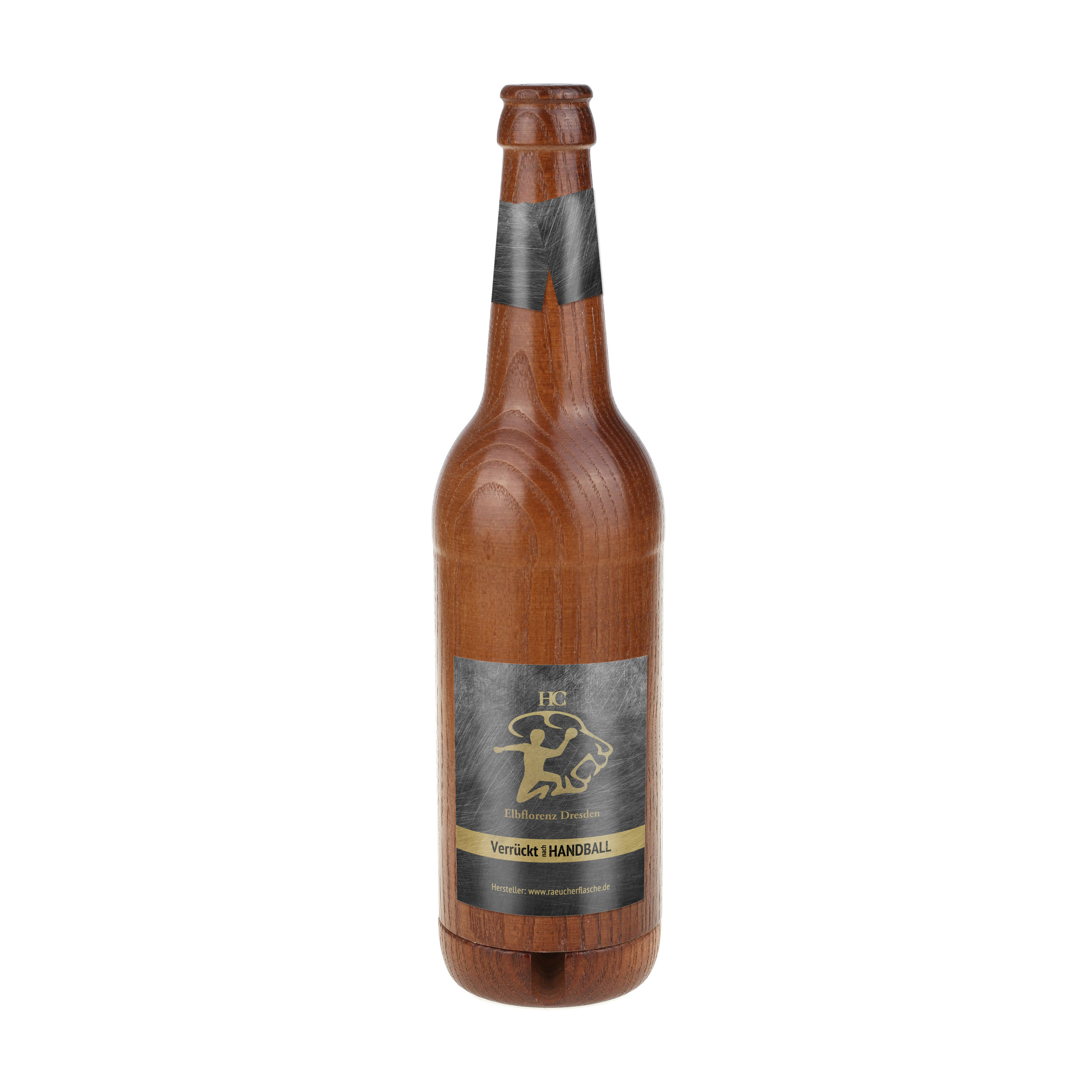 Produkt: Räucherflasche Bier Longneck 0,5 l „Handball zur Selbstgestaltung" inkl. hochwertigem Geschenkkarton in Holz-OptikFarbe der Räucherflasche: braunMaterial: hochwertiges Eschen-Holz Größe: ca. 27 cm hochGewicht: ca. 400 g schwer Hinweis: passende Aufkleber finden Sie im Fanshop ihres Lieblingsvereins Besonderheiten: Unsere Räucherflaschen werden in Handarbeit im Erzgebirge hergestellt und sind beim Deutschen Patent- und Markenamt geschützt. Sie werden mit duftenden Räucherkerzchen betrieben (nicht im Lieferumfang enthalten aber in unseren Onlineshop zusätzlich bestellbar) und sind ein Hingucker, Partygag oder Geschenk für Weihnachten aber auch für jede andere Jahreszeit. Im Gegensatz zu klassischen Räuchermännchen oder Räucherfiguren ist unsere Räucherflasche auf Grund ihrer neutralen Optik aber ganzjährig nutzbar. So können neben vielen verschiedenen Düften für die Sommer- oder Weihnachtszeit auch spezielle Räucherkerzchen mit einem angenehmen Kräuterduft verwendet werden. Dieser ist ideal für laue Sommerabende denn Menschen mögen ihn, Mücken und Wespern eher weniger. Wichtige Hinweise: Unsere Räucherflaschen werden ausschließlich im Erzgebirge hergestellt!Holz ist ein natürlicher Rohstoff, deshalb stellen kleine dunkle Einschlüsse oder Streifen keinen Qualitätsmangel darRäucherflaschen sind nur für InnenräumeVor Feuchtigkeit schützenAchtung: Nicht ohne Aufsicht betreiben! Nicht für Kinderhände! Nur Räucherkerzen bis 3 cm Höhe verwenden und keine Kerzen!
