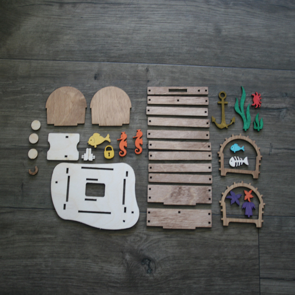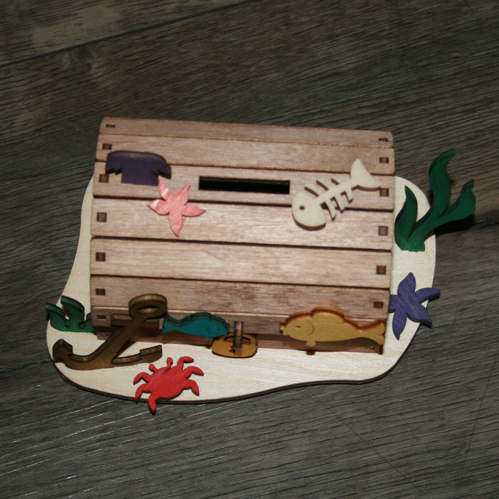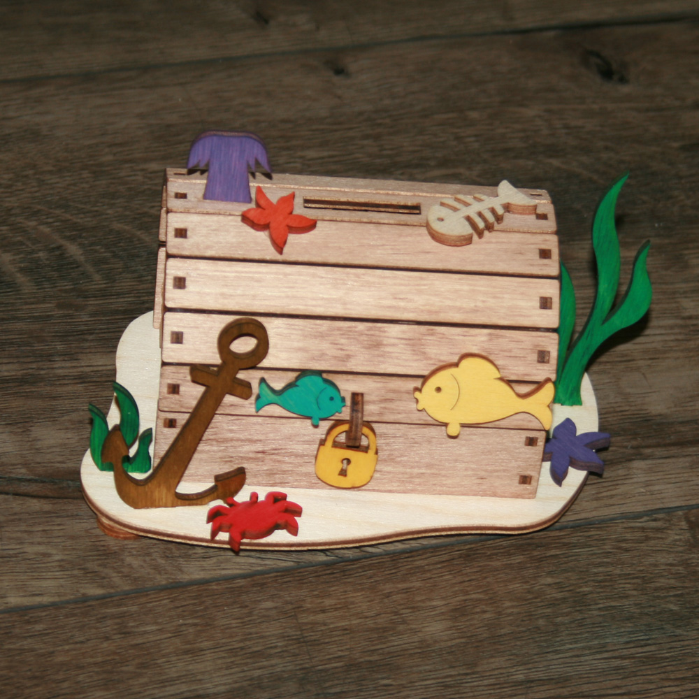 Kuhnert Bastelset aus Holz für Kinder "Spardose Schatztruhe"