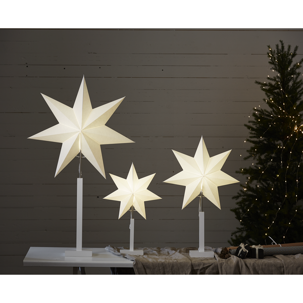 Papiersternleuchte Weihnachtsstern Stern Leuchte mit Holzfuß / Ständer - Größe: 34 x 52 cm grau (in verschiedenen Größen)