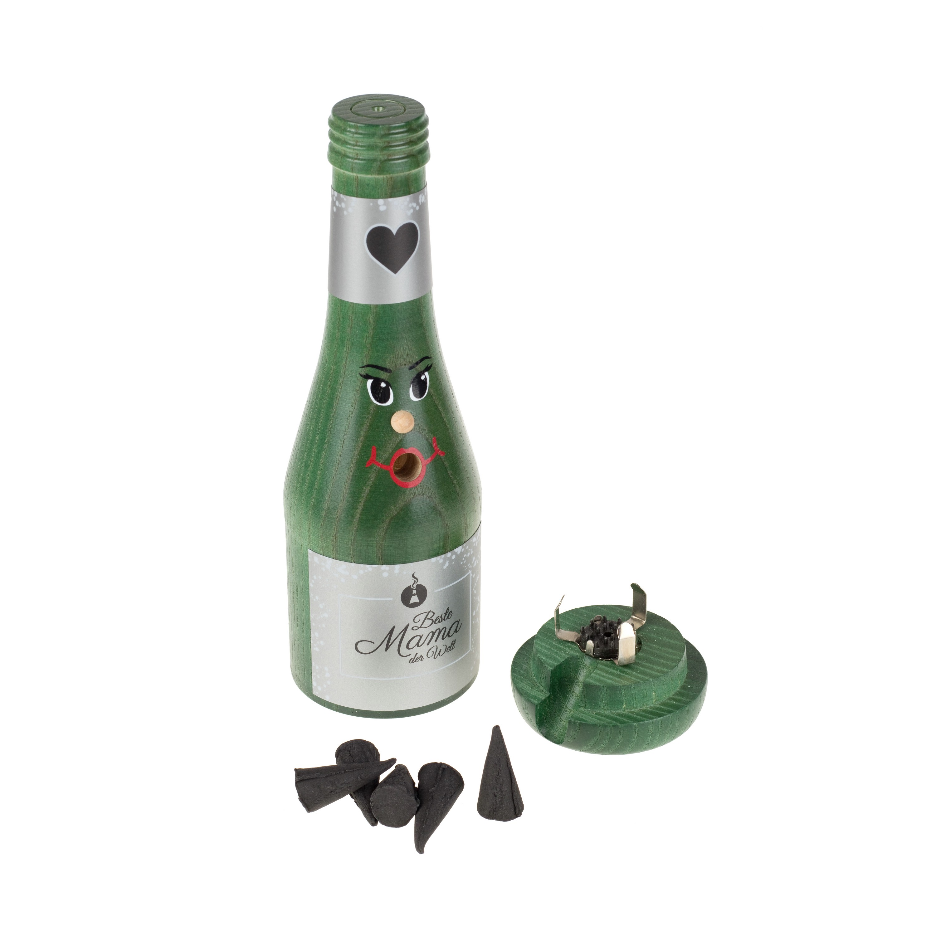 Produktinformationen "Räucherflasche Räucherfigur Rauchfigur Räuchermännchen Sekt 0,2 grün - "Beste Mama""