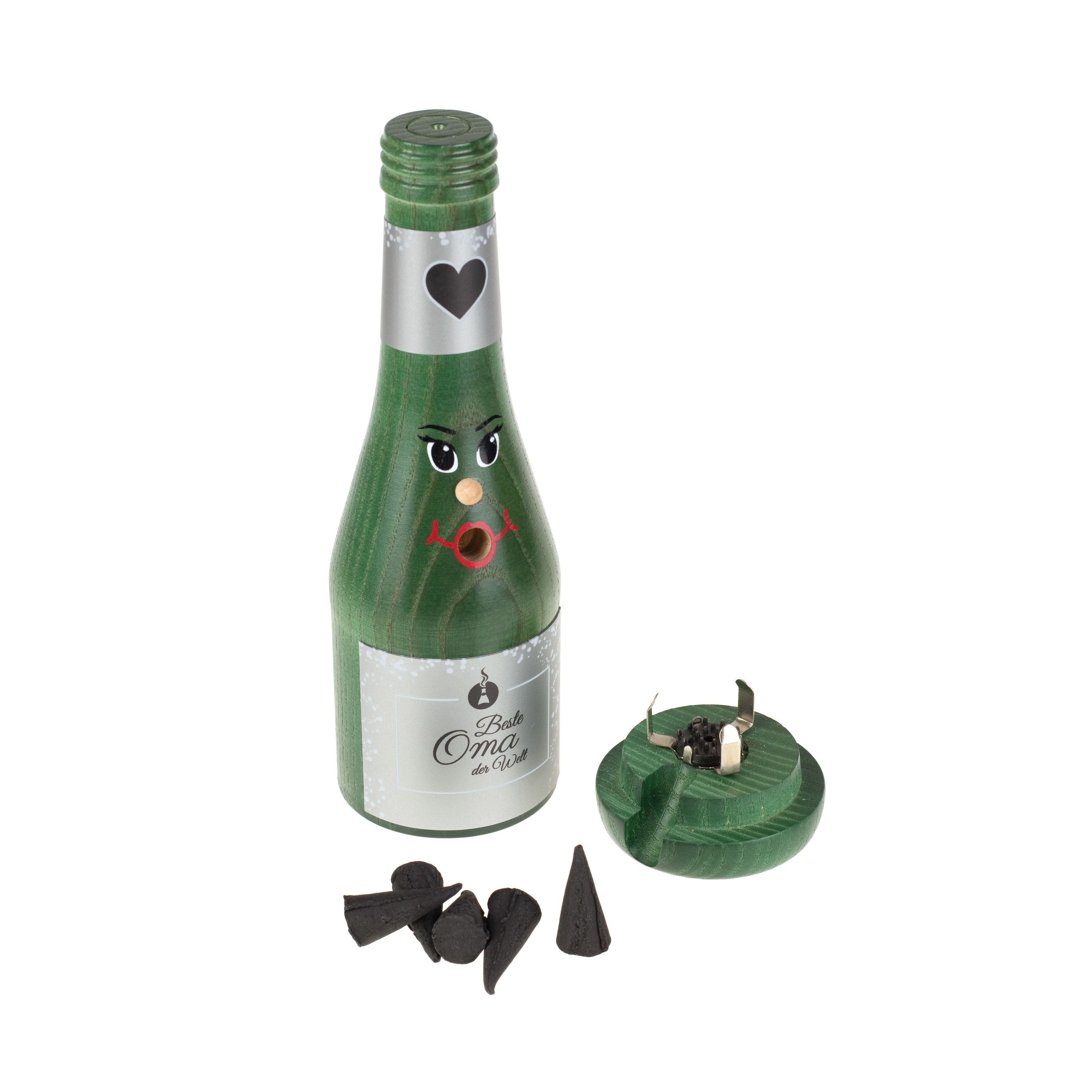 Räucherflasche Räucherfigur Rauchfigur Räuchermännchen Sekt 0,2 grün - "Beste Oma"