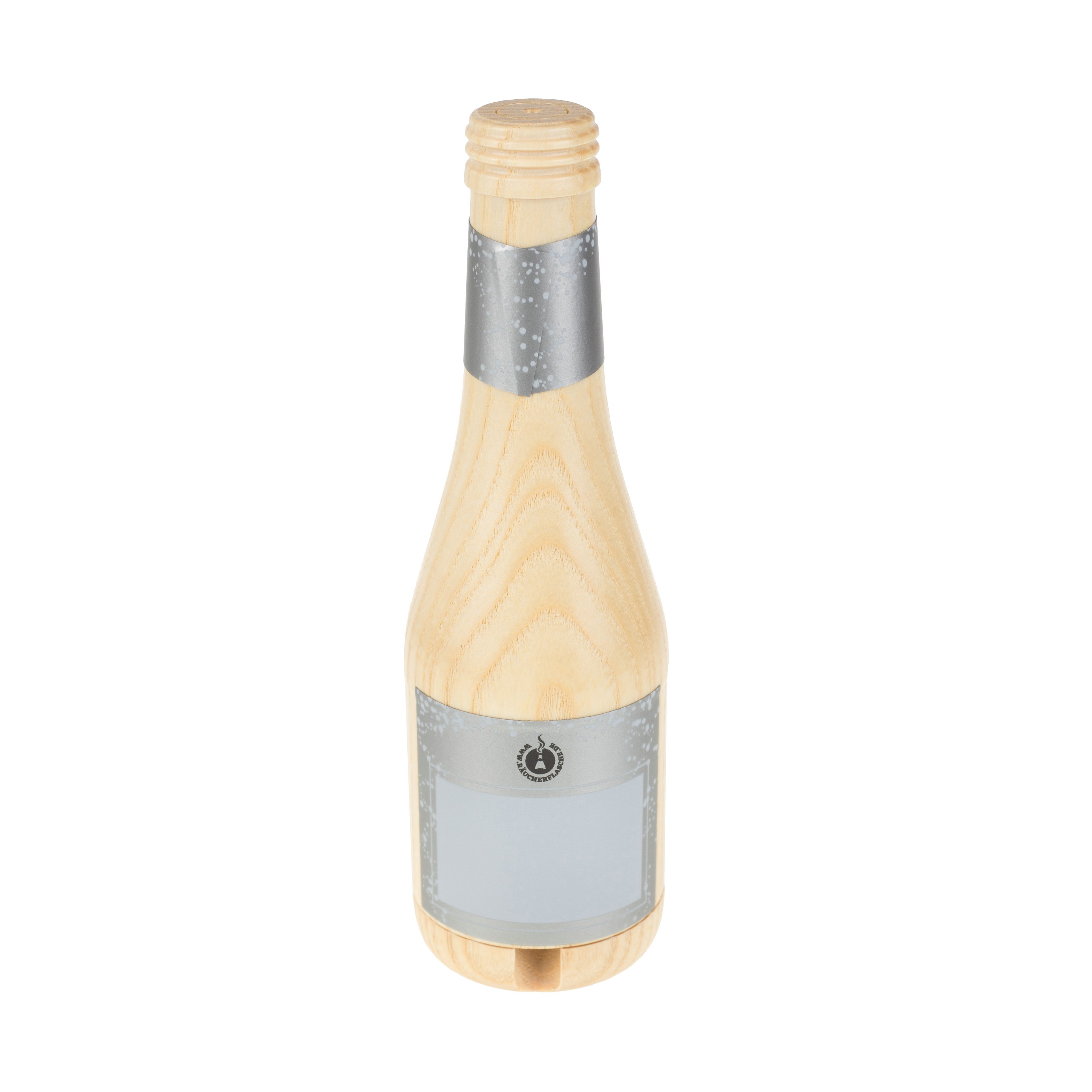 Produkt: Räucherflasche Sekt 0,2 l „Besten - zur Selbstgestaltung " inkl. hochwertigem Geschenkkarton in Holz-OptikFarbe der Räucherflasche: weißMaterial: hochwertiges Eschen-HolzGröße: ca. 19 cm hochGewicht: ca. 180 g schwerBesonderheiten: Unsere Räucherflaschen werden in Handarbeit im Erzgebirge hergestellt und sind beim Deutschen Patent- und Markenamt geschützt. Sie werden mit duftenden Räucherkerzchen (nicht im Lieferumfang enthalten aber in unseren Onlineshop zusätzlich bestellbar) und sind ein Hingucker, Partygag oder Geschenk für Weihnachten aber auch für jede andere Jahreszeit. Im Gegensatz zu klassischen Räuchermännchen oder Räucherfiguren ist unsere Räucherflasche auf Grund ihrer neutralen Optik aber ganzjährig nutzbar. So können neben vielen verschiedenen Düften für die Sommer- oder Weihnachtszeit auch spezielle Räucherkerzchen mit einem angenehmen Kräuterduft verwendet werden. Dieser ist ideal für laue Sommerabende denn Menschen mögen ihn, Mücken und Wespern eher weniger.Wichtige Hinweise: Unsere Räucherflaschen werden ausschließlich im Erzgebirge hergestellt!Holz ist ein natürlicher Rohstoff, deshalb stellen kleine dunkle Einschlüsse oder Streifen keinen Qualitätsmangel darRäucherflaschen sind nur für InnenräumeVor Feuchtigkeit schützenAchtung: Nicht ohne Aufsicht betreiben! Nicht für Kinderhände! Nur Räucherkerzen bis 3 cm Höhe verwenden und keine Kerzen!