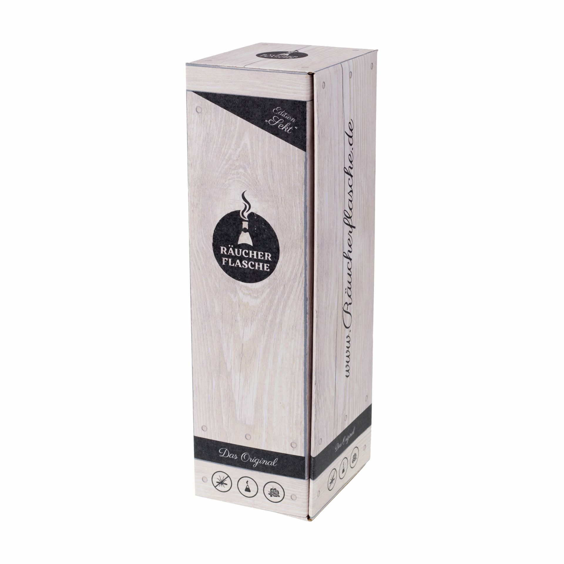 Produkt: Räucherflasche Bier Longneck 0,5 l „zur Selbstgestaltung" inkl. hochwertigem Geschenkkarton in Holz-OptikFarbe der Räucherflasche: braunMaterial: hochwertiges Eschen-Holz Größe: ca. 27 cm hochGewicht: ca. 400 g schwerBesonderheiten: Unsere Räucherflaschen werden in Handarbeit im Erzgebirge hergestellt und sind beim Deutschen Patent- und Markenamt geschützt. Sie werden mit duftenden Räucherkerzchen betrieben (nicht im Lieferumfang enthalten aber in unseren Onlineshop zusätzlich bestellbar) und sind ein Hingucker, Partygag oder Geschenk für Weihnachten aber auch für jede andere Jahreszeit. Im Gegensatz zu klassischen Räuchermännchen oder Räucherfiguren ist unsere Räucherflasche auf Grund ihrer neutralen Optik aber ganzjährig nutzbar. So können neben vielen verschiedenen Düften für die Sommer- oder Weihnachtszeit auch spezielle Räucherkerzchen mit einem angenehmen Kräuterduft verwendet werden. Dieser ist ideal für laue Sommerabende denn Menschen mögen ihn, Mücken und Wespern eher weniger.Wichtige Hinweise: Unsere Räucherflaschen werden ausschließlich im Erzgebirge hergestellt!Holz ist ein natürlicher Rohstoff, deshalb stellen kleine dunkle Einschlüsse oder Streifen keinen Qualitätsmangel darRäucherflaschen sind nur für InnenräumeVor Feuchtigkeit schützenAchtung: Nicht ohne Aufsicht betreiben! Nicht für Kinderhände! Nur Räucherkerzen bis 3 cm Höhe verwenden und keine Kerzen!