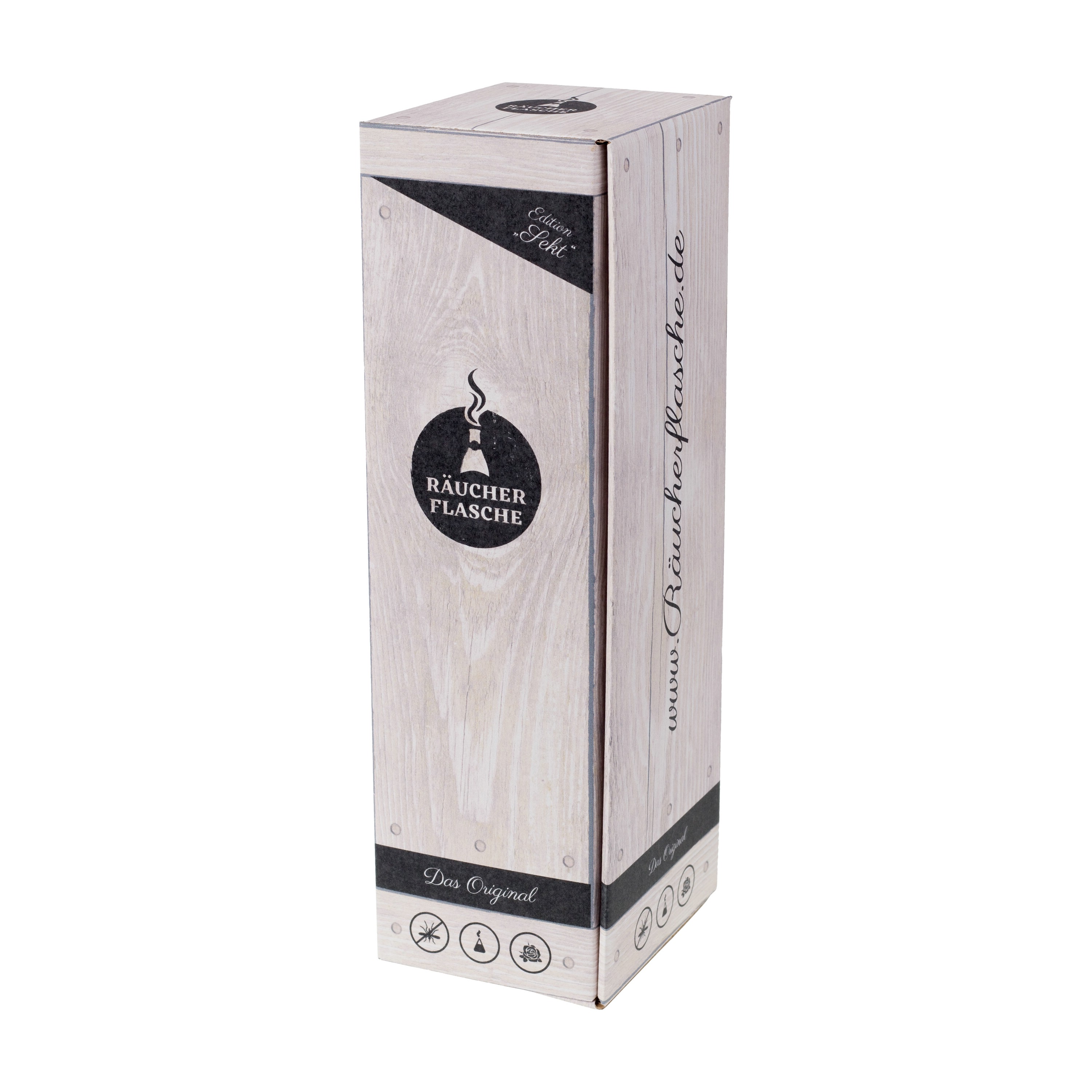 - Produkt: Räucherflasche Sekt 0,2 l „zur individuellen Selbstgestaltung“ inkl. hochwertigem Geschenkkarton in Holz-Optik